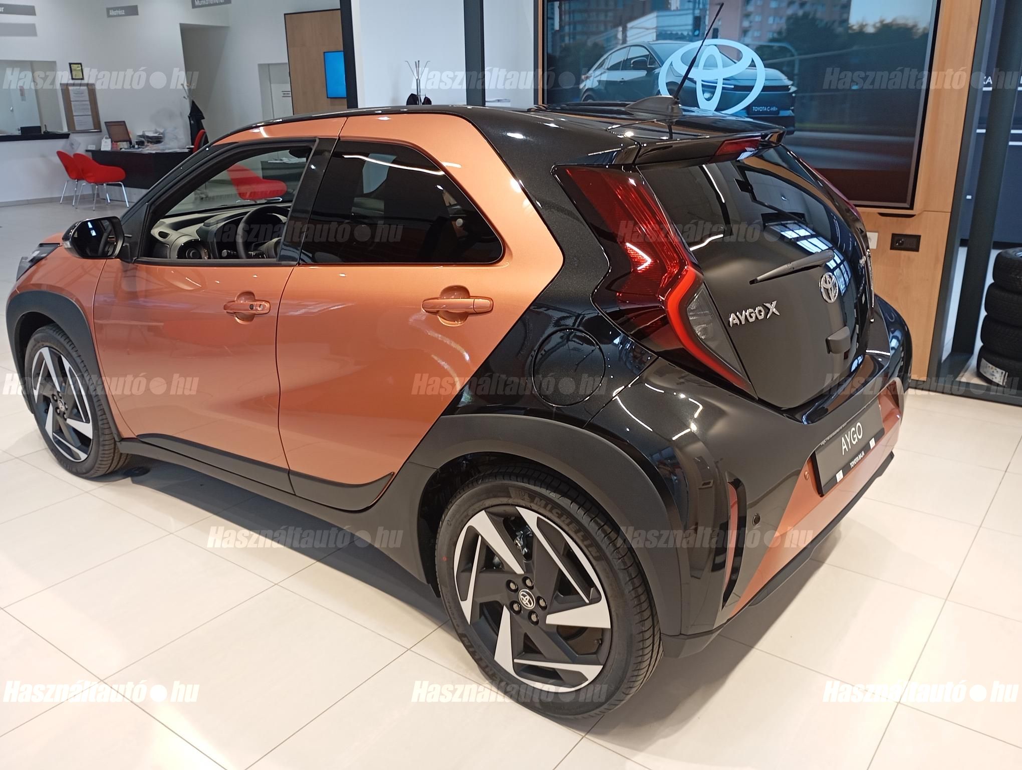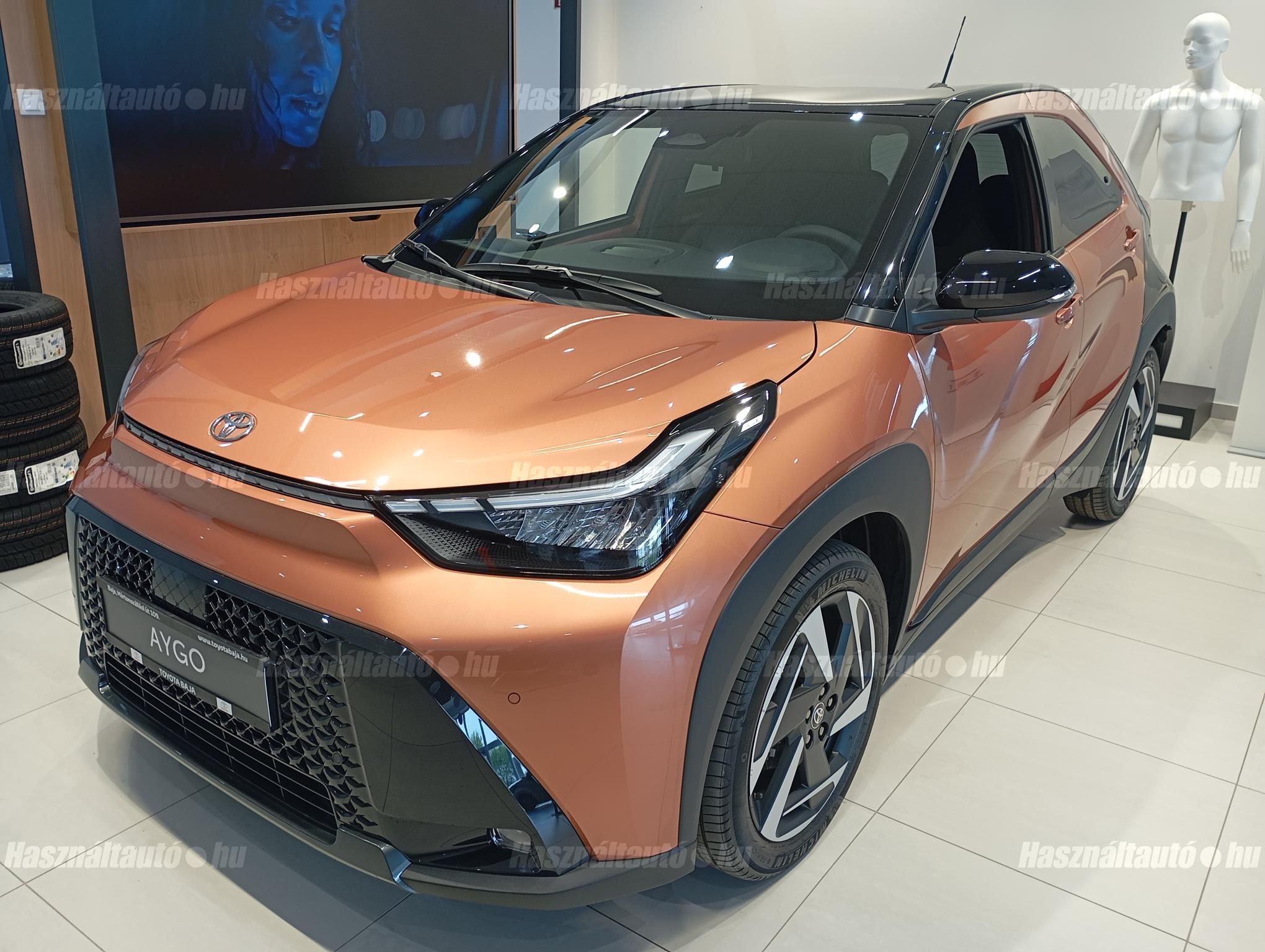 ÚJ! Hibrid Aygo X 1.5L 115LE automata váltóval Executive felszereltséggel FAHÉJ színben FEKETE tetővel készletről elvihető! Ára magánszemélyeknek készpénz kedvezménnyel 8.599.000 Ft finanszírozással 8.850.000 Ft. Használt autó beszámítás esetén 150.000 Ft kedvezmény! Forgalomba helyezés díja: 250.000 Ft Téli kerék szett vásárlása esetén 150.000 Ft kupon kedvezmény. Az árak tájékoztató jellegűek, az árváltoztatás jogát fenntartjuk! Baja 6500 Mártonszállási út 109.